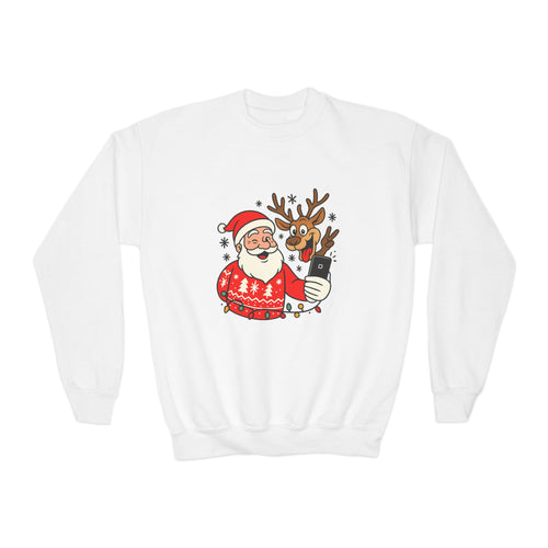 Youth Christmas Crewneck Sweatshirt, Cozy Holiday Gift, Kid's Sweater, Santa Design, Festive Sweater for Winter Celebrations