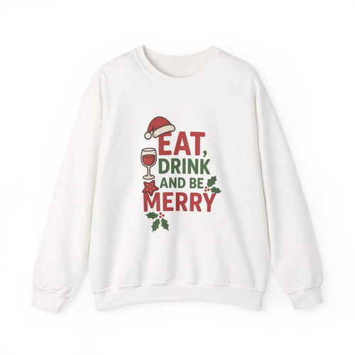 Festive Holiday Sweatshirt - Eat, Drink, Be Merry, Cozy Gift, Christmas Apparel, Unisex Crewneck, Winter Wear